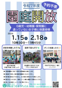 ・園の諸事情により開放日を変更する場合がございます。その際は、幼稚園ホームページにてお知らせいたします。